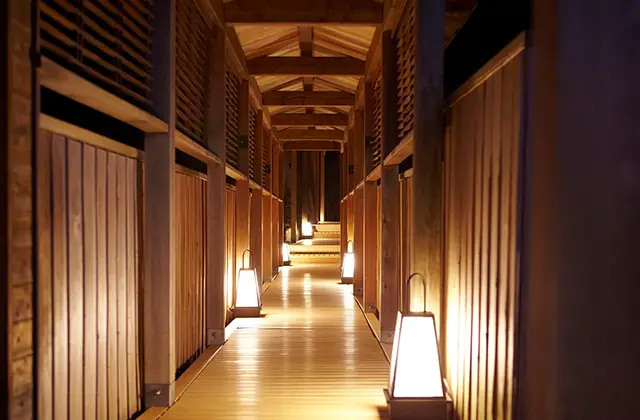 The hinoki cypress bathtub and hiba cypress walls give off a fragrant wooden aroma, which serves to further enhance the experience as you soak in the soothing hot spring waters.